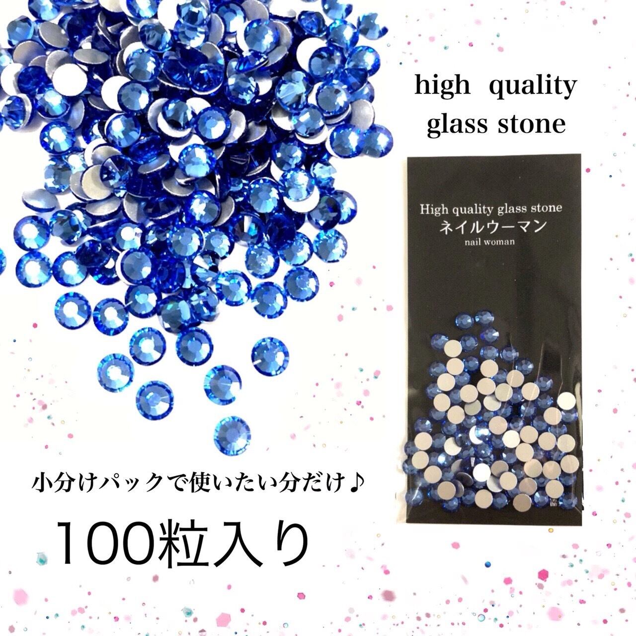 100粒入り★ライトサファイア ブルー 最高品質ガラスストーン
